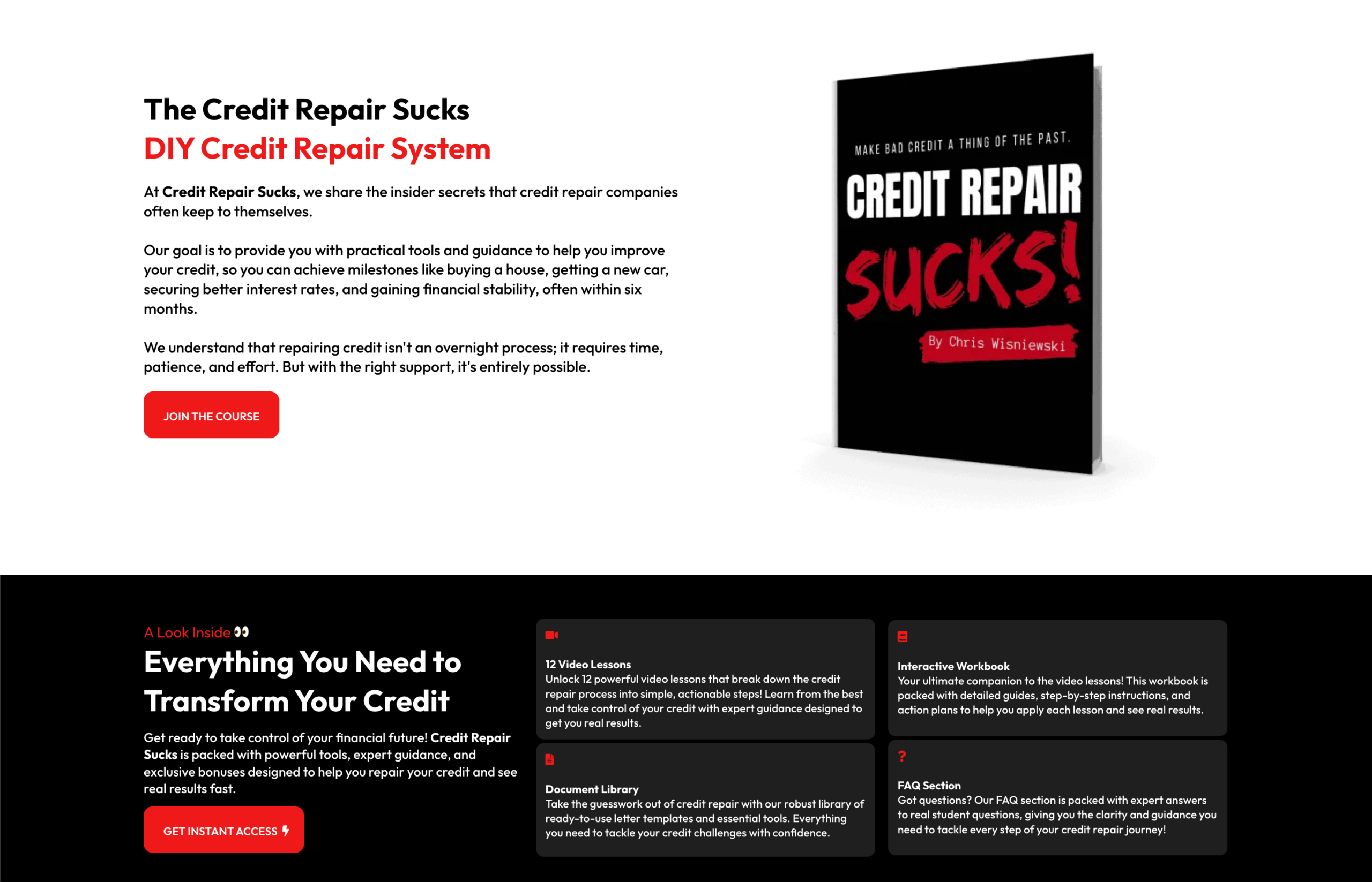 Credit Repair Sucks is a financial education brand that had built a loyal following through one-to-one coaching. The founder had proven the concept — people wanted the help, the results were real — but the model wasn’t scalable. Every new client meant more hours, and there was a ceiling on how far that could go.